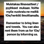 90 km til Kokkola / Pietarsaari Kruunupyy lufthavn. Gæsterne kan frit benytte en sauna til at forynge sig.
